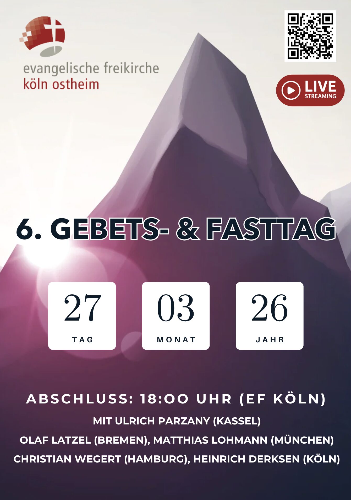 Am Abend wird ein Gebetsabend live aus der Freikirche Köln Östheim…